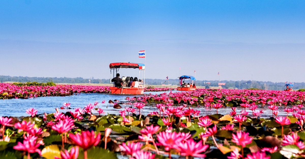 Located in Thailand's northeastern region, the Nong Han Lake in Udon Thani is famous for its stunning scene of red lotuses, instilling a sense of tranquility and determination. Glide on the calm waters in a boat, surrounded by a panorama of pink and white blooms that provide a scenic delight. While the blossoms are best viewed from mid-February to March, a trip in November onward offers the next best blooms.