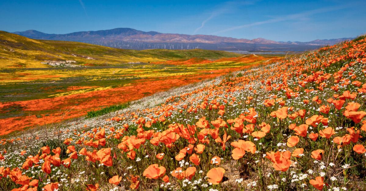 Step into the sophisticated charm of Antelope Valley this spring as it reveals a stunning display of seasonal flowers, including brilliant poppies, vibrant lupines, and delicate wildflowers. Witness the remarkable transformation of the terrain from mid-February into May as hills and plains don opulent attire of orange, purple, and yellow hues, creating a serene and colorful oasis. Explore the vast landscapes, invigorated by the diverse palette of colors. Adventure seekers will find numerous hiking trails offering awe-inspiring views of spring's splendor.